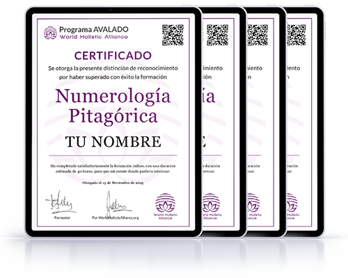 Cada formación está avalada por World Holistic Alliance (WHA), e incluye su propio certificado digital personalizado, que podrás descargar e incorporar a tu currículum profesional o usar para ofrecer tus propias sesiones.