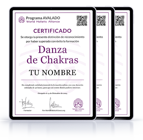 Cada formación está avalada por World Holistic Alliance (WHA), e incluye su propio certificado digital personalizado, que podrás descargar e incorporar a tu currículum profesional o utilizar para ofrecer tus propias sesiones.