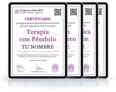 Cada una de las 4 formaciones incluye su propio certificado digital personalizado, avalado por World Holistic Alliance, que podrás descargar y agregar a tu currículum terapéutico.